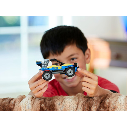 • Divertiti con 3 possibilità di costruzione con questo set LEGO® Creator 3 in 1. Costruisci il Dune Buggy e poi ricostruiscilo per tanta azione ad alta quota a bordo dell’aereo super veloce, oppure affronta i terreni più accidentati con il robusto quad.